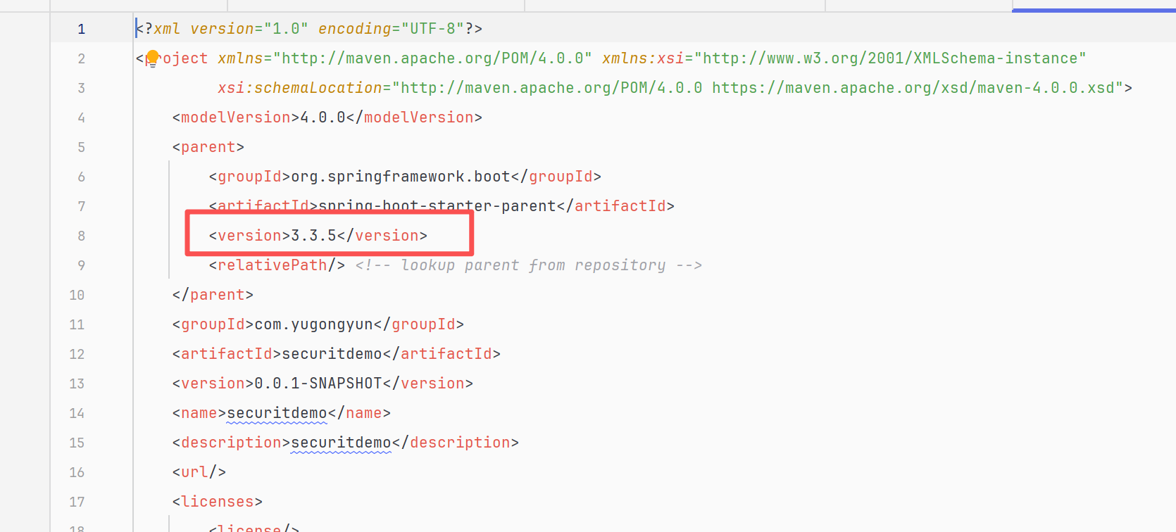 创建完成后我们修改pom文件中SpringBoot的版本为3.3.5: